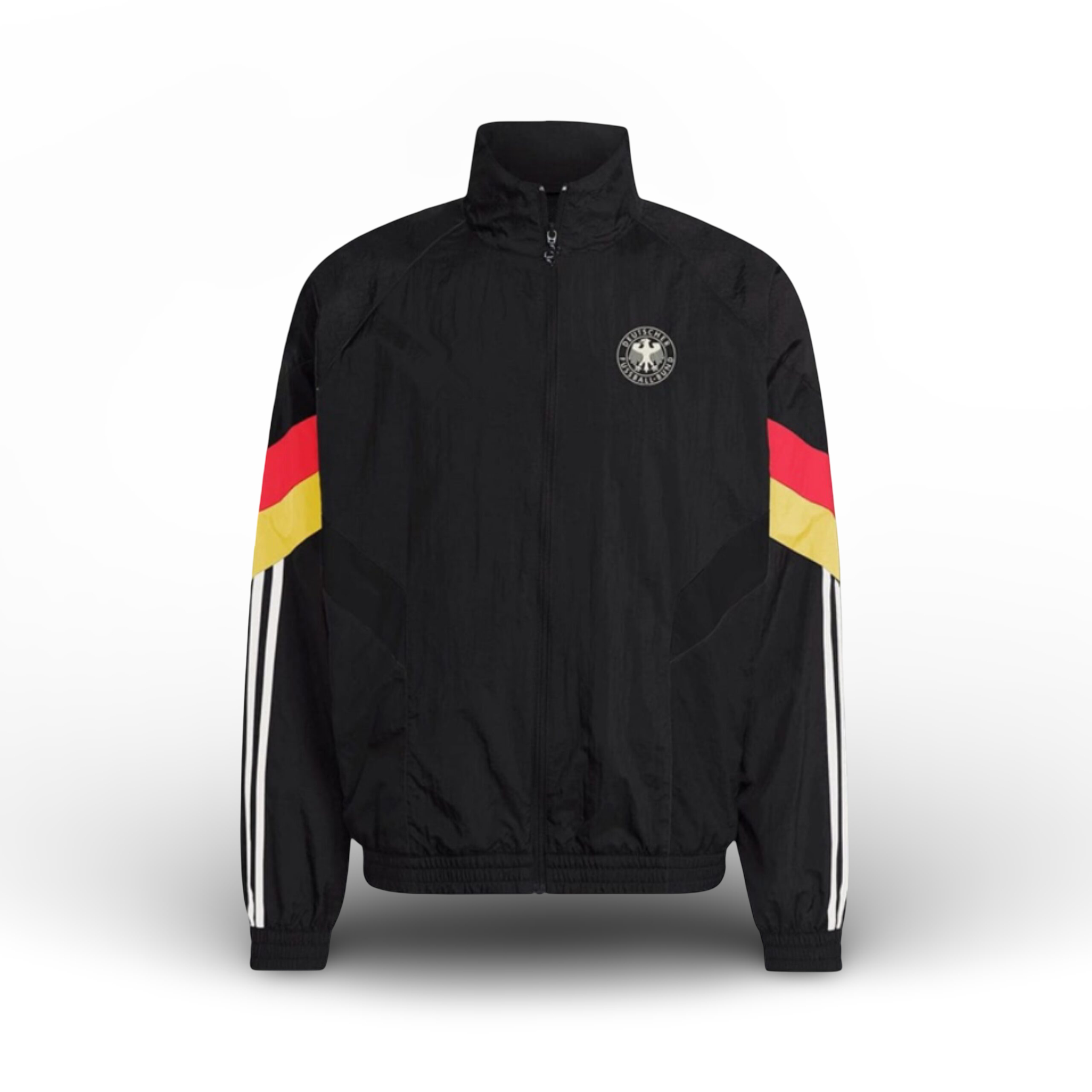 Mach die Adidas DFB 1996 Woven Trainingsjacke Deutschland Schwarz zu einem unverzichtbaren Teil deiner Garderobe und erlebe die perfekte Kombination aus Nostalgie und modernem Flair!