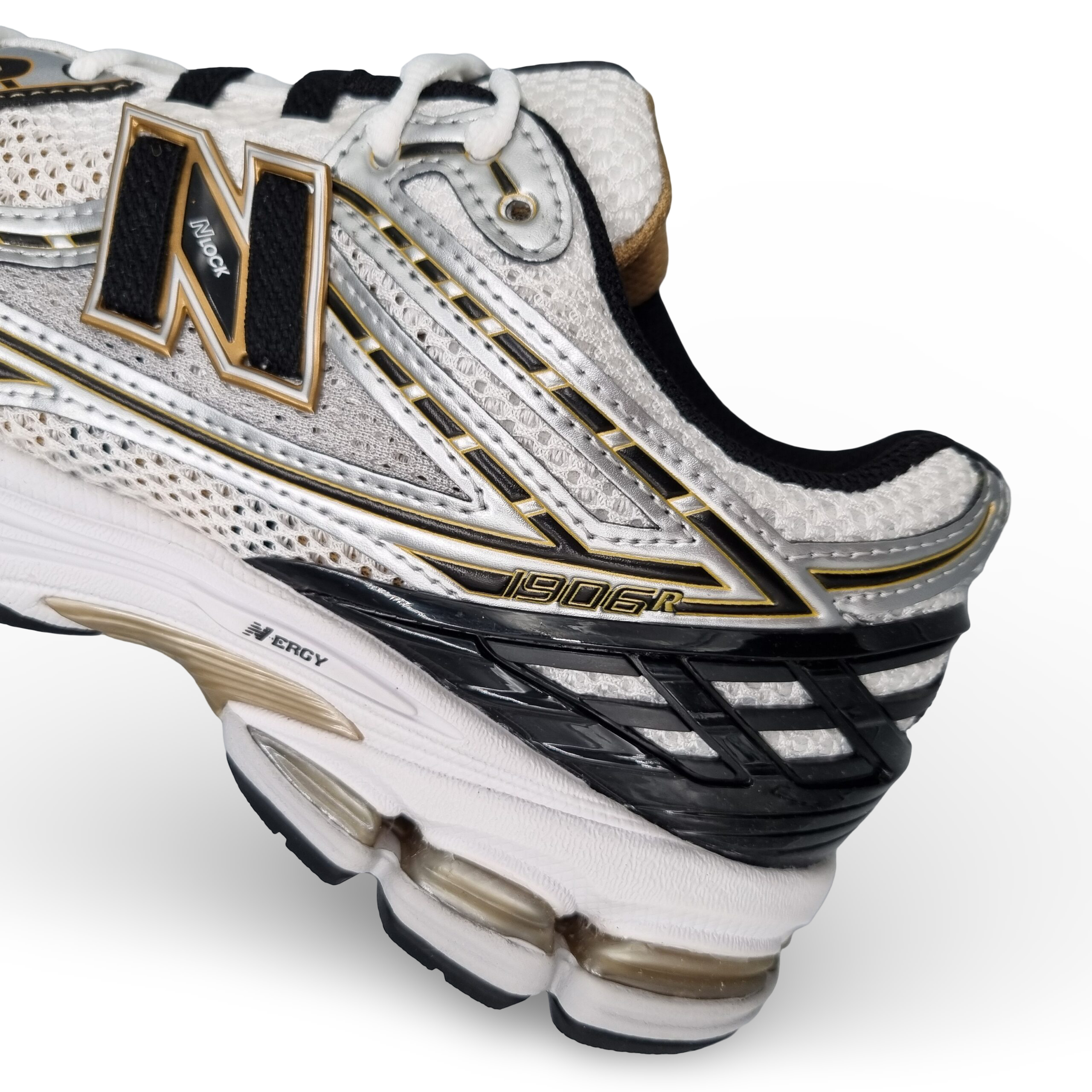 Strahlendes Weiß trifft auf edle Metallic-Gold-Akzente und verleiht dem technischen Look des 1906R eine hochwertige, fast schon glamouröse Note. Die perfekte Balance aus Retro-Vibes und modernem Streetwear-Appeal.